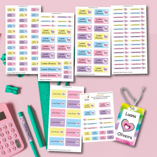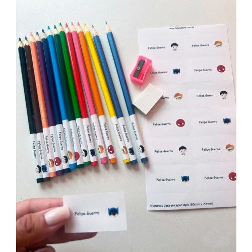 Em cada kit de etiquetas, os personagens, kit moldura e nome se repetirão em todas as cartelas escolhidas;