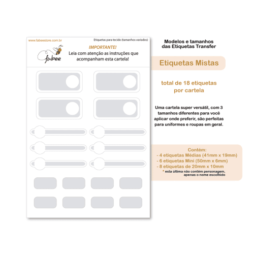 - NÃO passe o ferro em cima da etiqueta depois que aplicá-la no tecido.